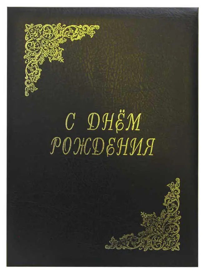 Папка адресная дизайнерские материалы А4 (пухлая) "С Днем Рождения" черный под кожу