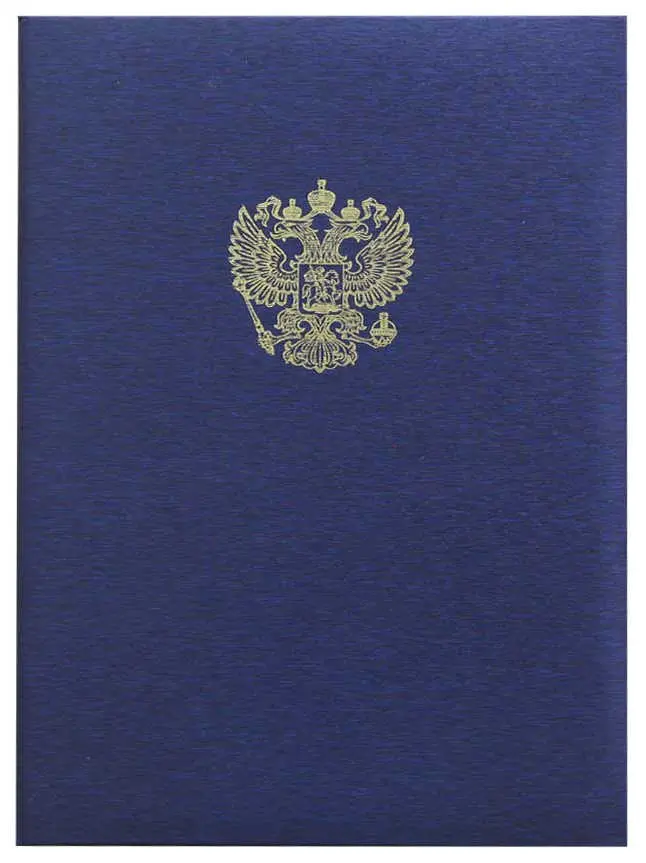 Папка адресная дизайнерские материалы А4 (пухлая) с российским орлом шелк синий