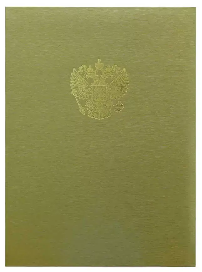 Папка адресная дизайнерские материалы А4 (пухлая) с российским орлом шелк золотой