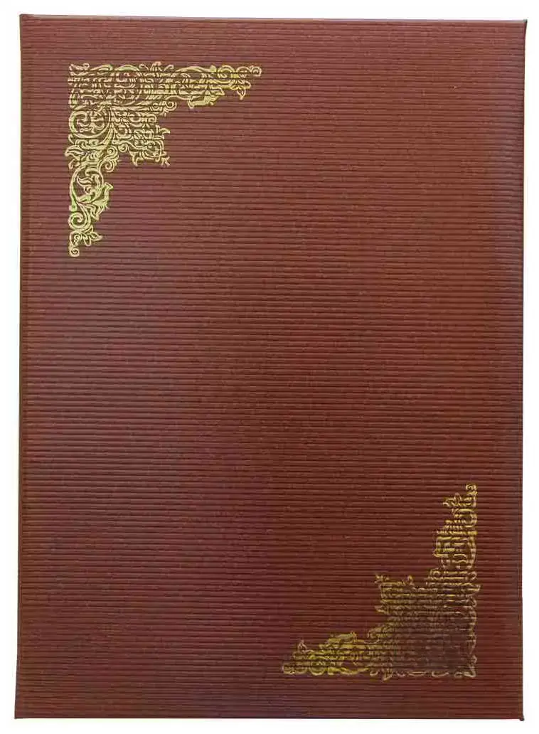 Внутренние вклейки — белая офсетная бумага. На обложку методом тиснения золотой