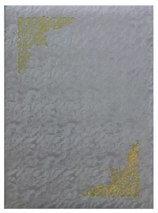 Внутренние вклейки — белая офсетная бумага. На обложку методом тиснения золотой