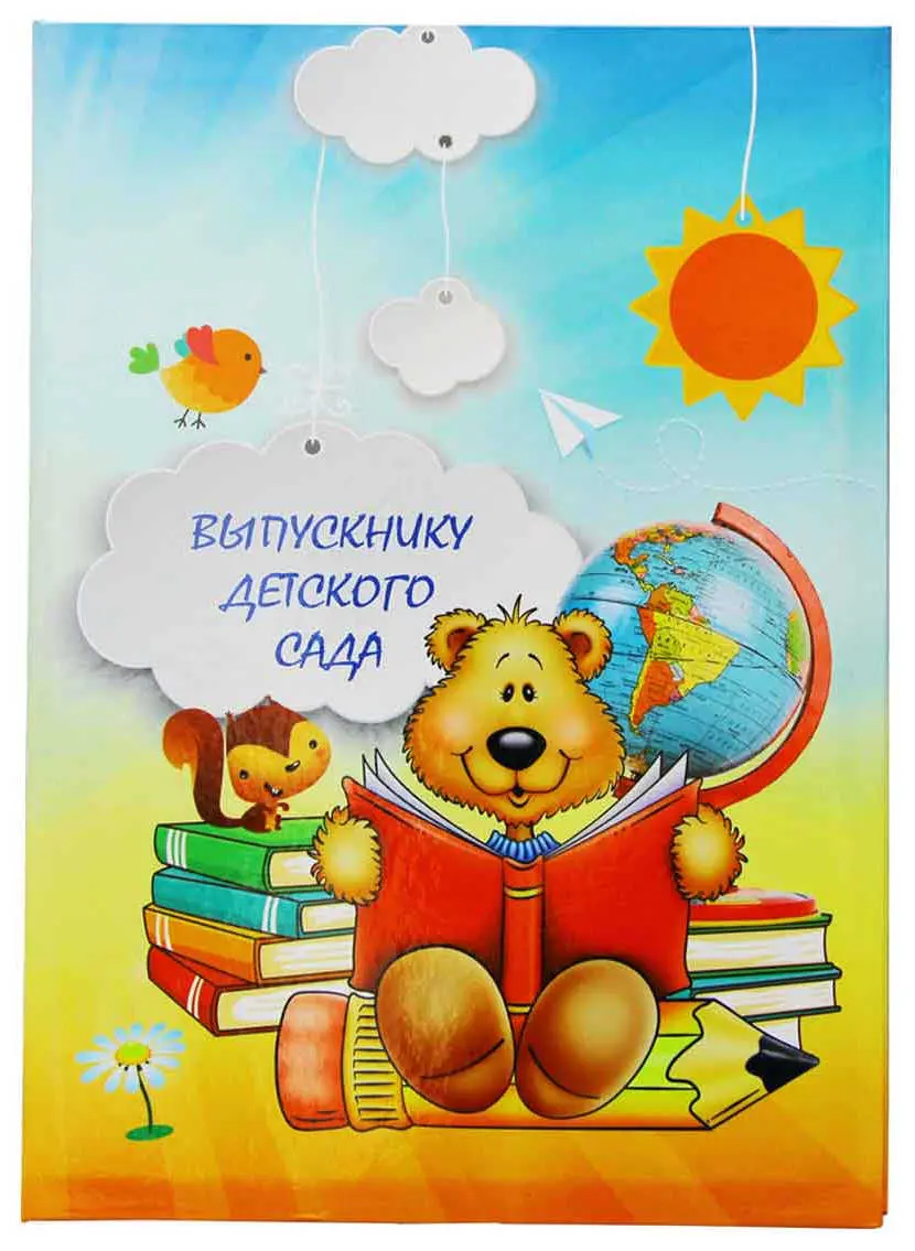 Папка адресная ламинированная А4 (пухлая) + 3 файла "Выпускнику детского сада" Мишка с книжкой