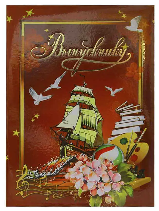 Папка адресная ламинированная А4 (пухлая) + 3 файла "Выпускнику" Желтый парус