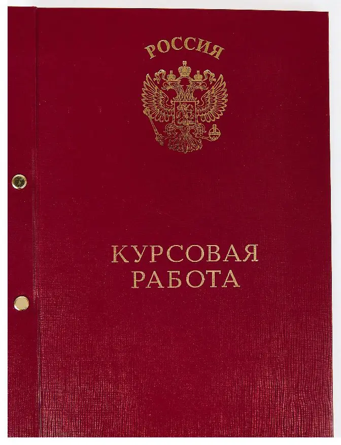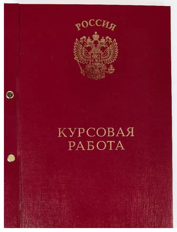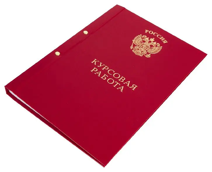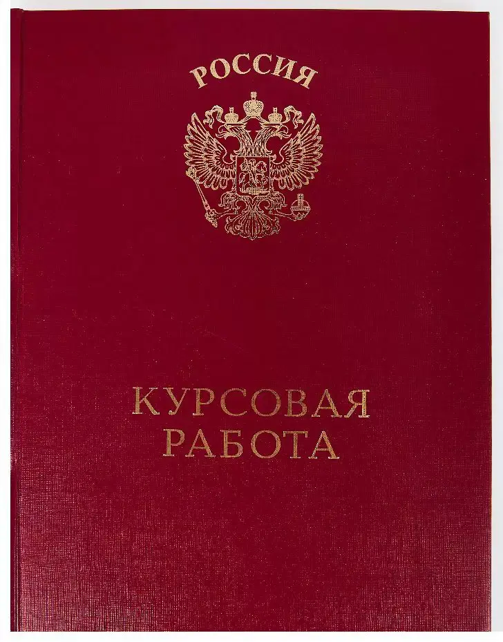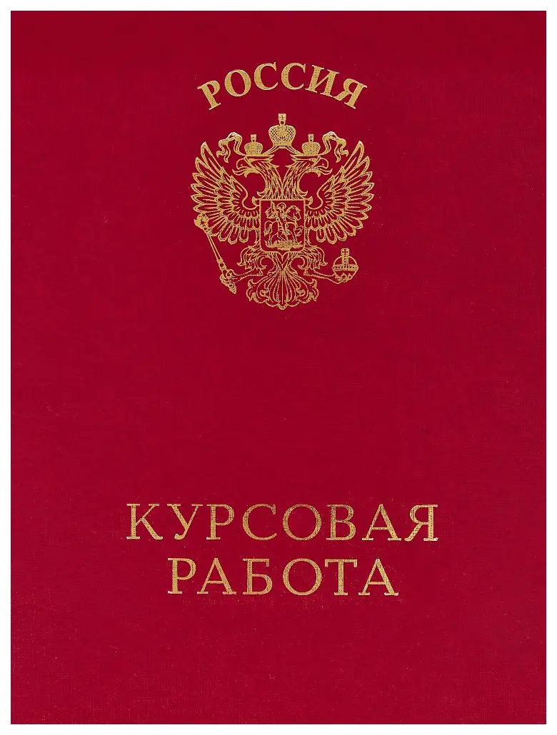 На лицевой стороне выполнено тиснение золотом "Орёл" и "Курсовая работа"