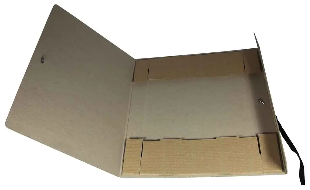 Складной короб "Отчет-архив" изготовлен из переплетного картона. Внутренние стойки выполнены из микрогофрокартона. В закрытом виде фиксируется с помощью двух хлопчатобумажных завязок. Ширина корешка - 35 мм. Внешние размеры 240х35х330 мм.