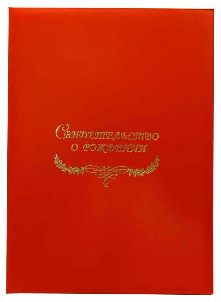Папка с файлом бумвинил А4 (пухлая) "Свидетельство о рождении с виньеткой" красная