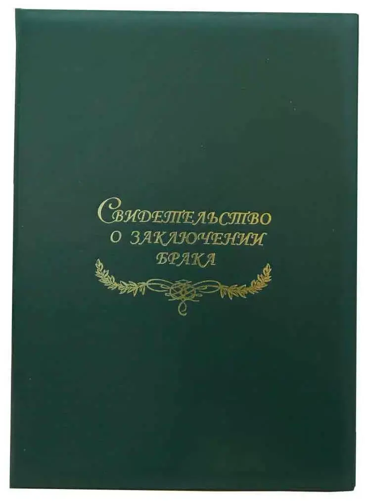 Папка с файлом бумвинил А4 (пухлая) "Свидетельство о заключении брака с виньеткой" зеленая