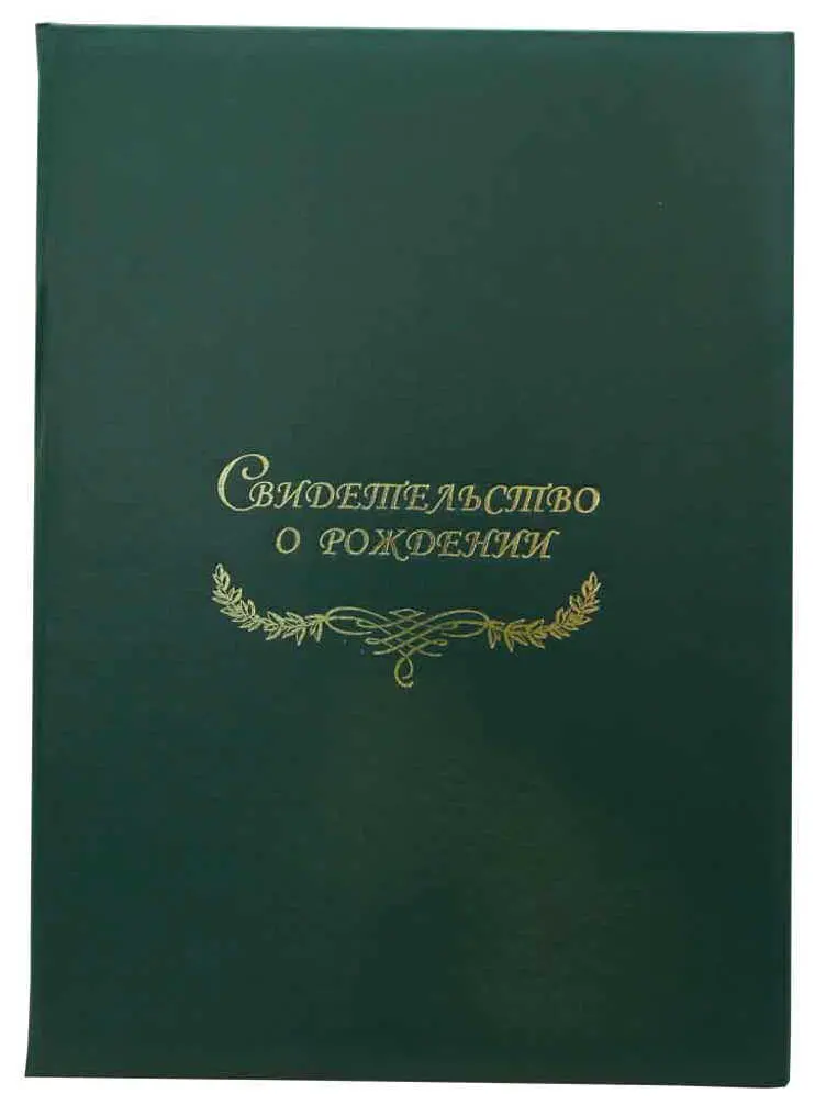 Папка с файлом бумвинил А4 (жесткая) "Свидетельство о рождении с виньеткой" зеленая