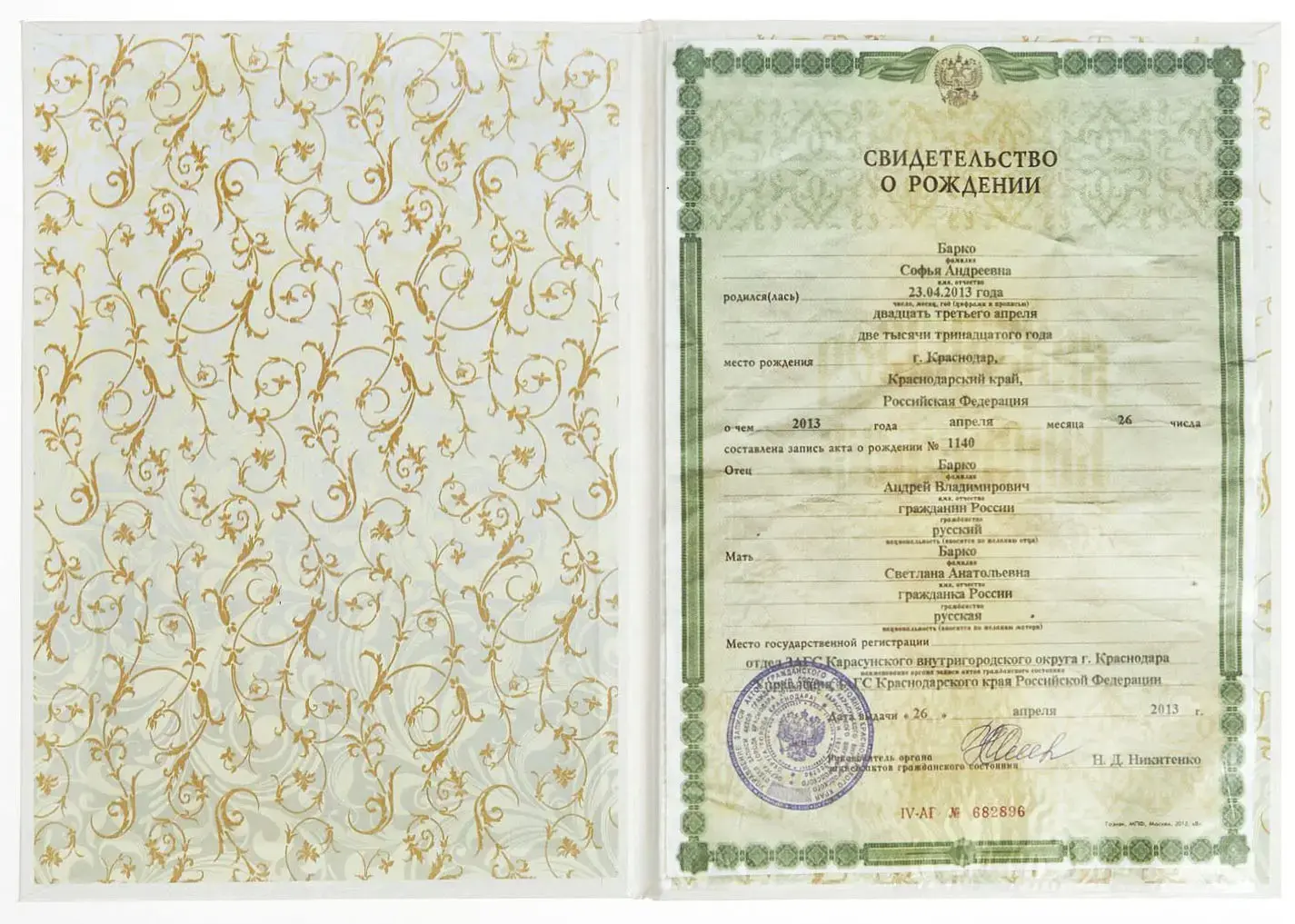 - Надпись (текст и рисунок): Свидетельство о рождении