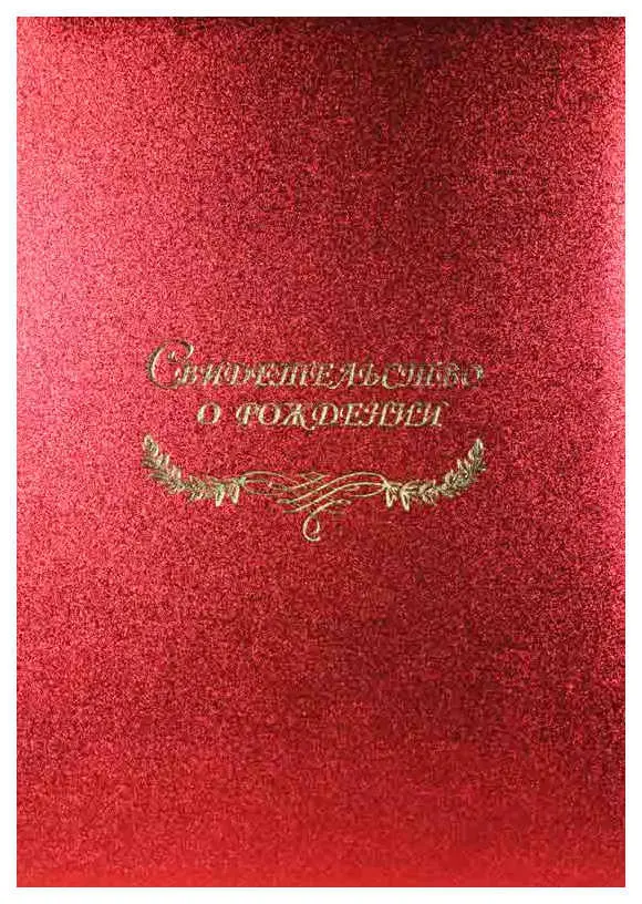 Папка с файлом дизайнерские переп.материалы А4 (пухлая) "Свидетельство о рождении с виньеткой" пыль красная