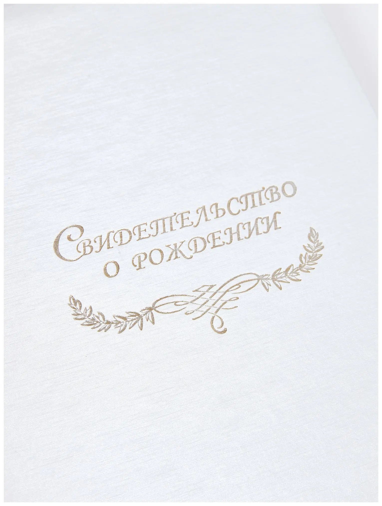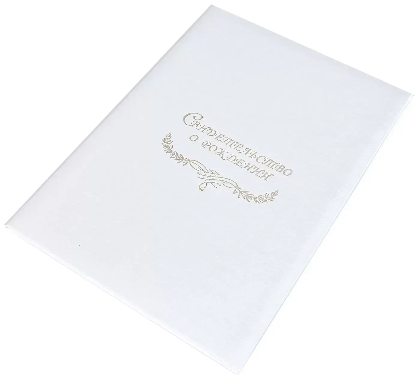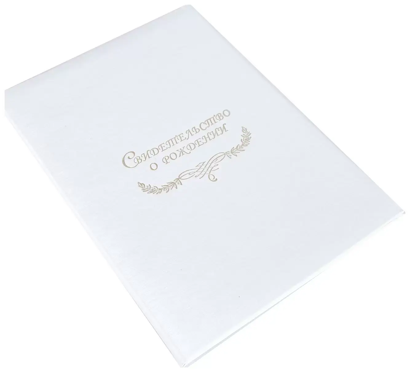 Папка с файлом дизайнерские переп.материалы А4 (пухлая) "Свидетельство о рождении с виньеткой" шелк белый