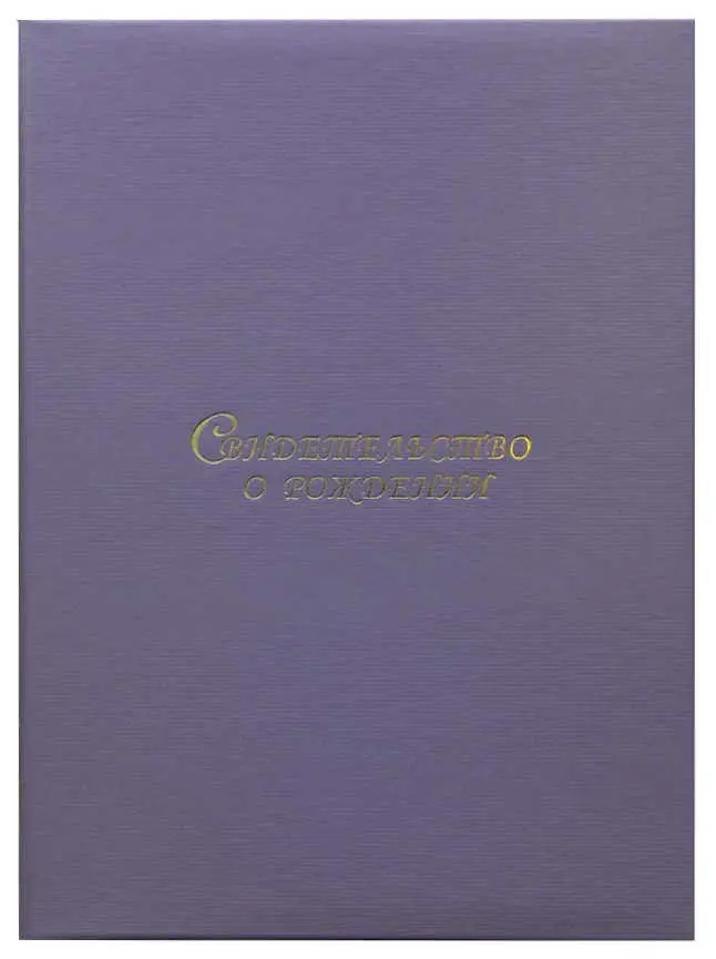 Папка с файлом дизайнерские переп.материалы А4 (пухлая) "Свидетельство о рождении" шелк сиреневый