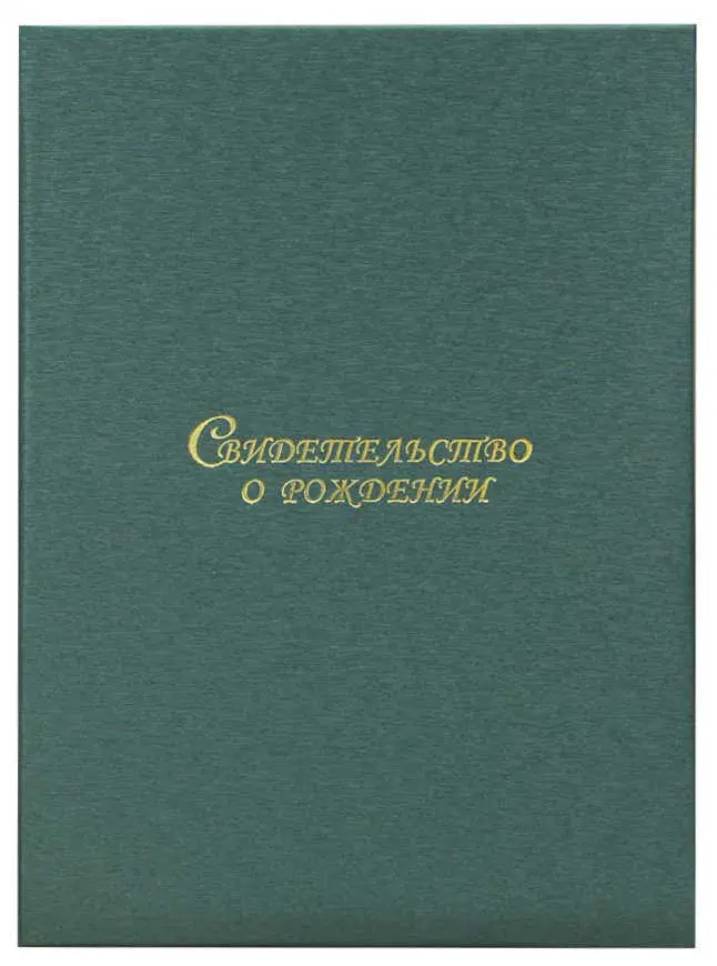 Папка с файлом дизайнерские переп.материалы А4 (пухлая) "Свидетельство о рождении" шелк зеленый