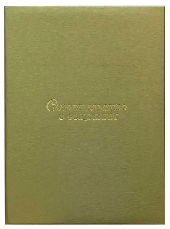 Папка с файлом дизайнерские переп.материалы А4 (пухлая) "Свидетельство о рождении" шелк золотой