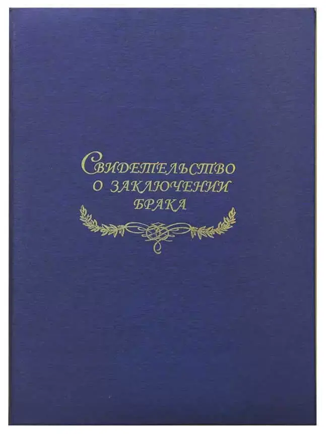 Папка с файлом дизайнерские переп.материалы А4 (пухлая) "Свидетельство о заключении брака с виньеткой" шелк синий
