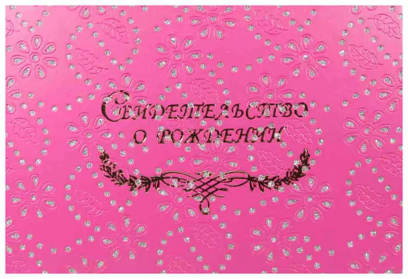 Папка с файлом дизайнерские переп.материалы А5 (пухлая) "Свидетельство о рождении с виньеткой" лепестки розовые