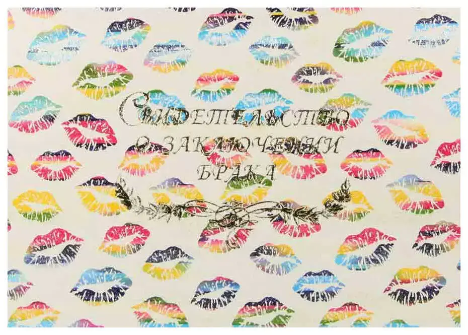 Папка с файлом дизайнерские переп.материалы А5 (пухлая) "Свидетельство о заключении брака с виньеткой" поцелуйчик