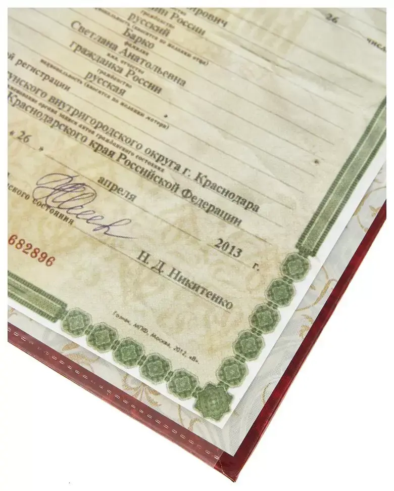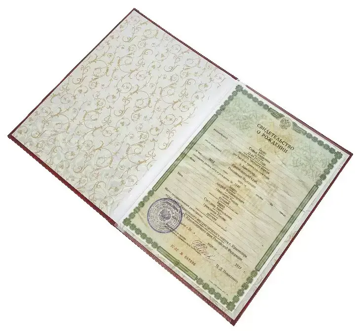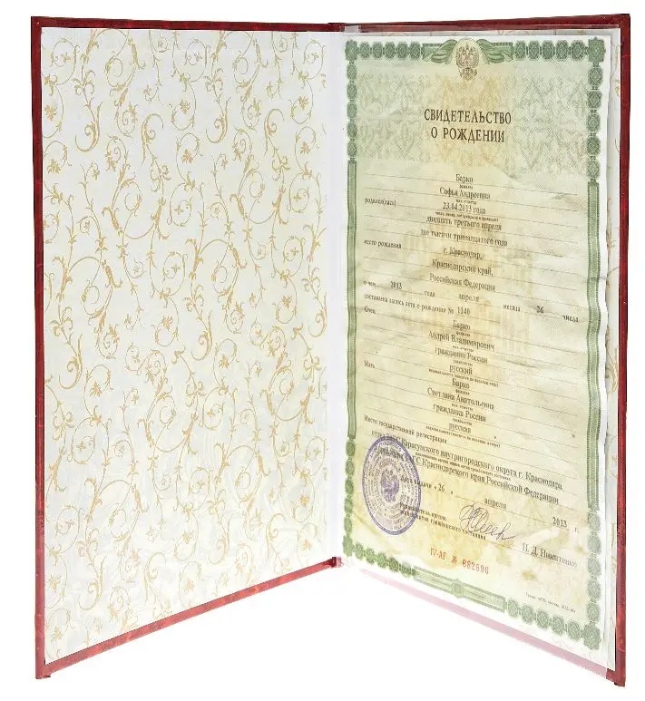 - Надпись (текст и рисунок): Свидетельство о рождении