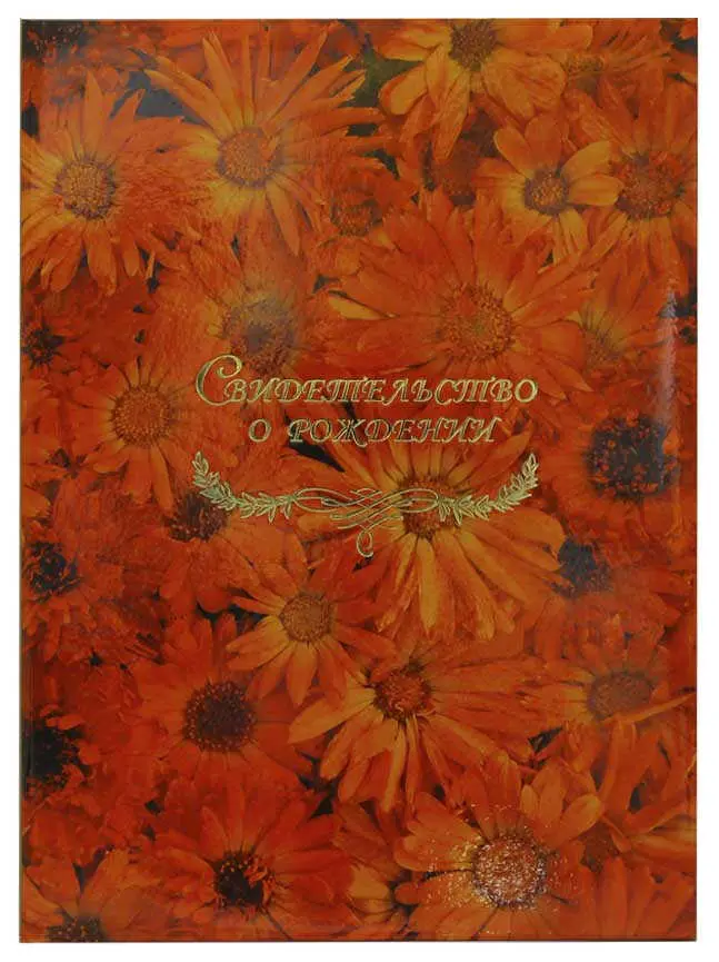 Папка с файлом ламинированная А4 (пухлая) "Свидетельство о рождении с виньеткой" Оранжевые цветы