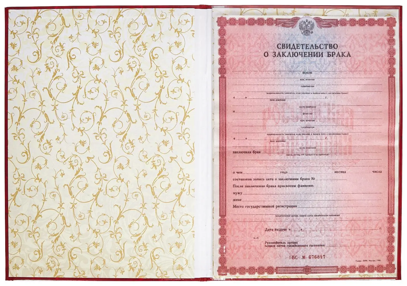 - Надпись (текст и рисунок): Свидетельство о заключении брака