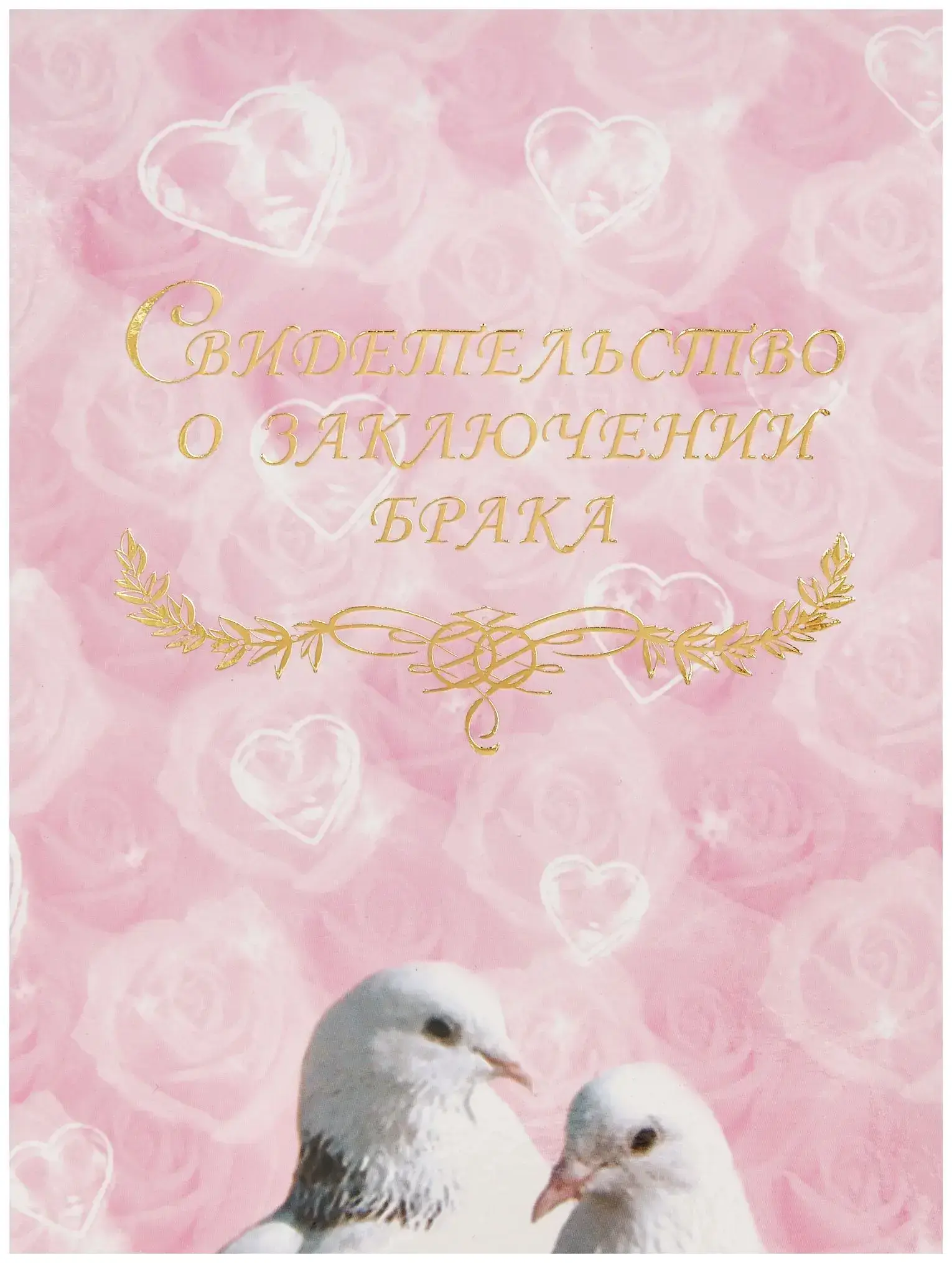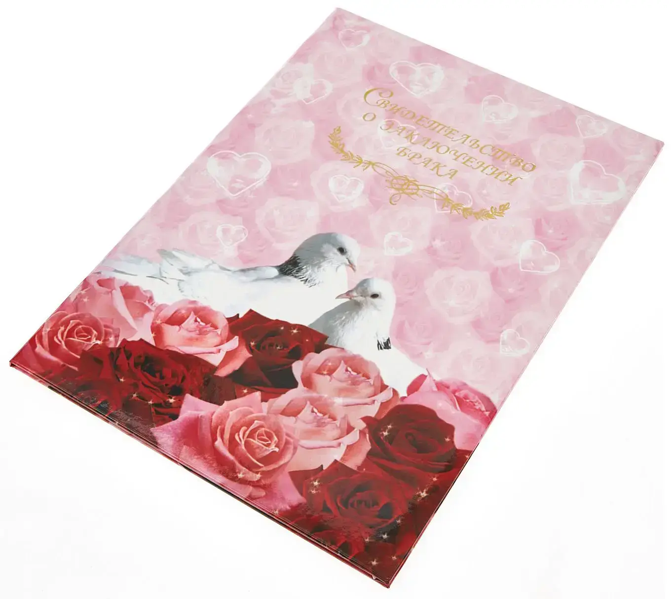 Папка с файлом ламинированная А4 (пухлая) "Свидетельство о заключении брака с виньеткой" Два белых голубя в цветах