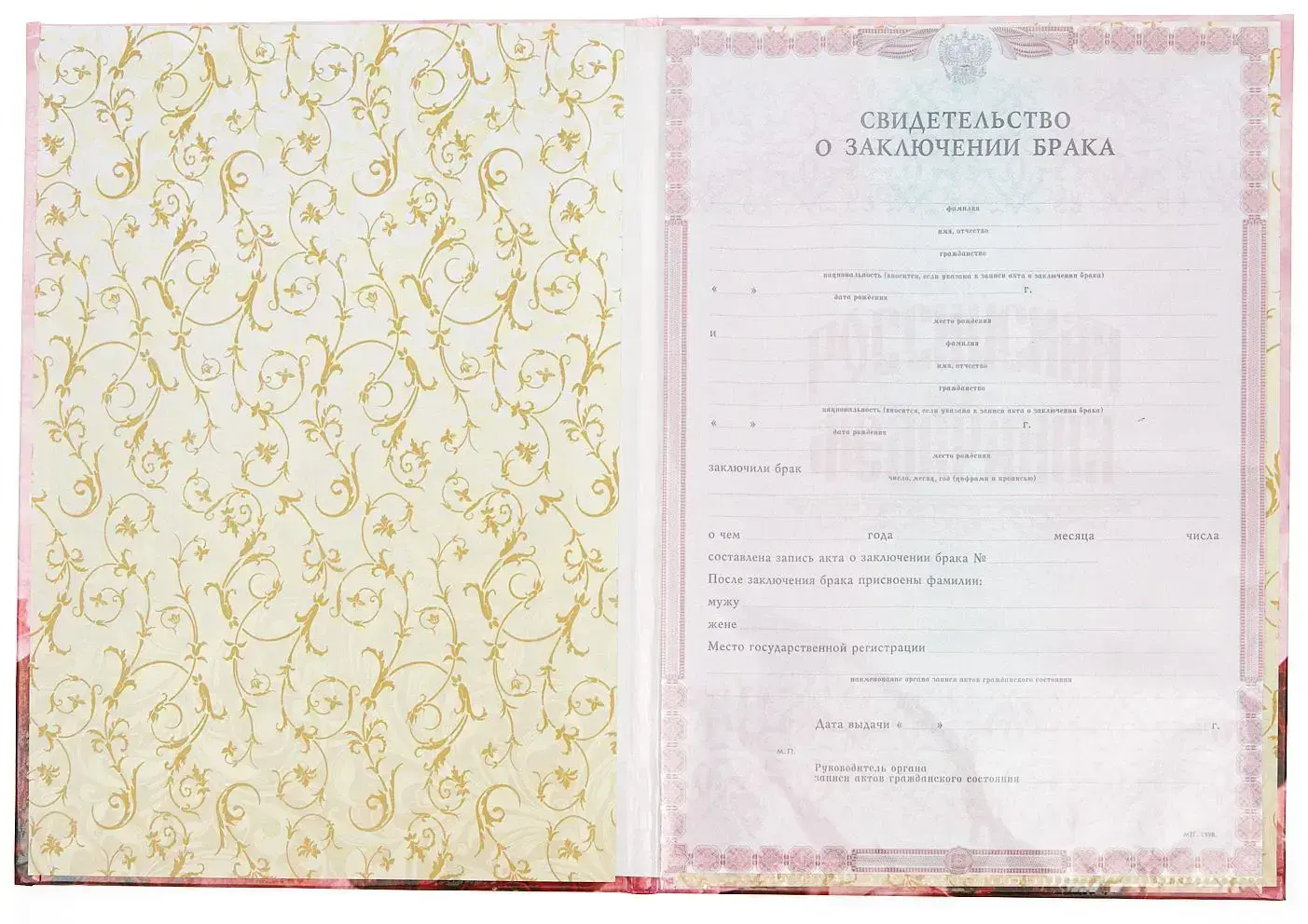 - Надпись (текст и рисунок): Свидетельство о заключении брака