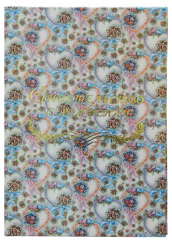 Папка с файлом ламинированная А5 (пухлая) "Свидетельство о рождении с виньеткой" Неразлучники
