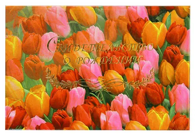 Папка с файлом ламинированная А5 (пухлая) "Свидетельство о рождении с виньеткой" Тюльпаны
