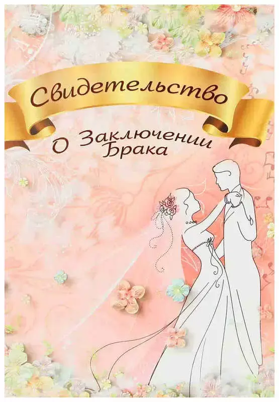 - Надпись (текст и рисунок): Свидетельство о заключении брака