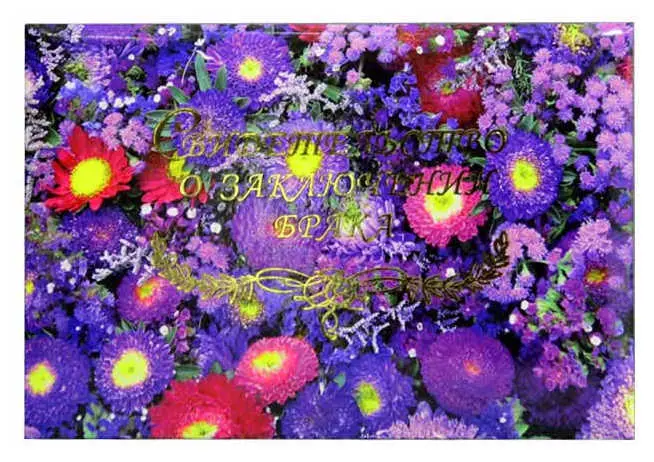 Папка с файлом ламинированная А5 (пухлая) "Свидетельство о заключении брака с виньеткой" Астры