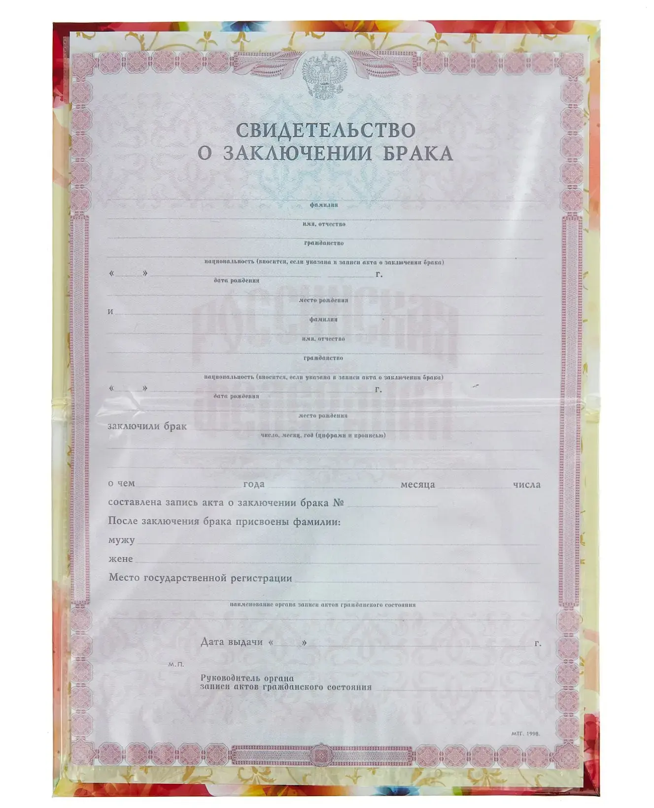 Папка с файлом ламинированная А5 (пухлая) "Свидетельство о заключении брака с виньеткой" Лебединый танец