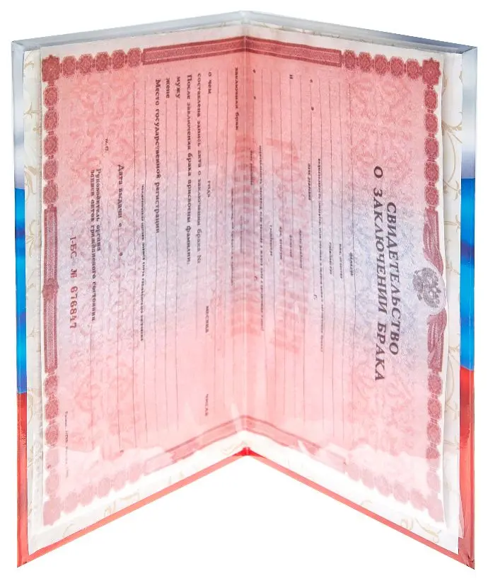 Папка с файлом ламинированная А5 (жесткая) "Свидетельство о заключении брака" С флагом (в.р)