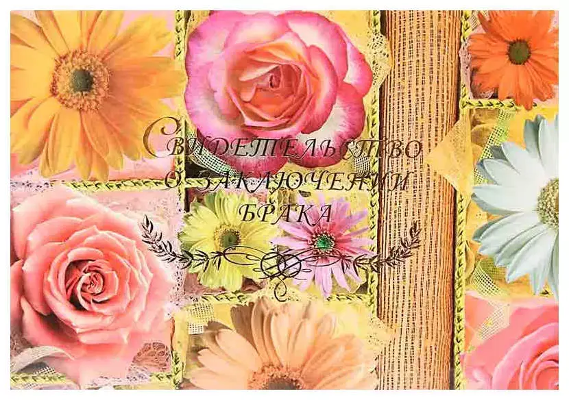 Папка с файлом ламинированная А5 (жесткая) "Свидетельство о заключении брака с виньеткой" Цветы в коробочках