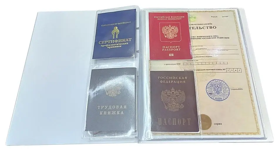 Папка "Семейные документы" ПВХ белый с картоном, печать (принт) "Малахит" с приваренным блоком (19 кармашков)