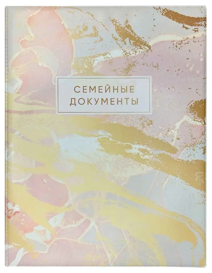 Папка "Семейные документы" ПВХ белый с картоном, печать (принт) "Розовый мрамор" с приваренным блоком (19 кармашков)