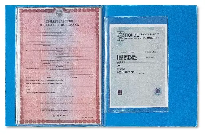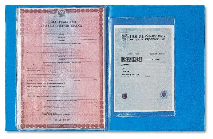 Папка "Семейные документы" ПВХ желе синее, с приваренным блоком (19 кармашков)