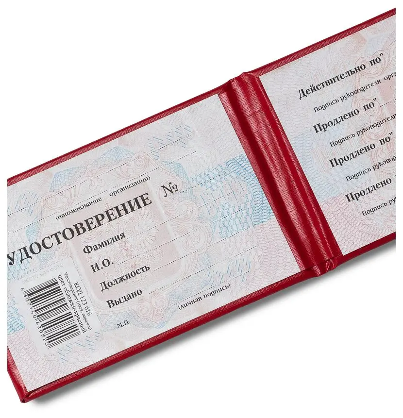 - Наименование изделия: Удостоверение