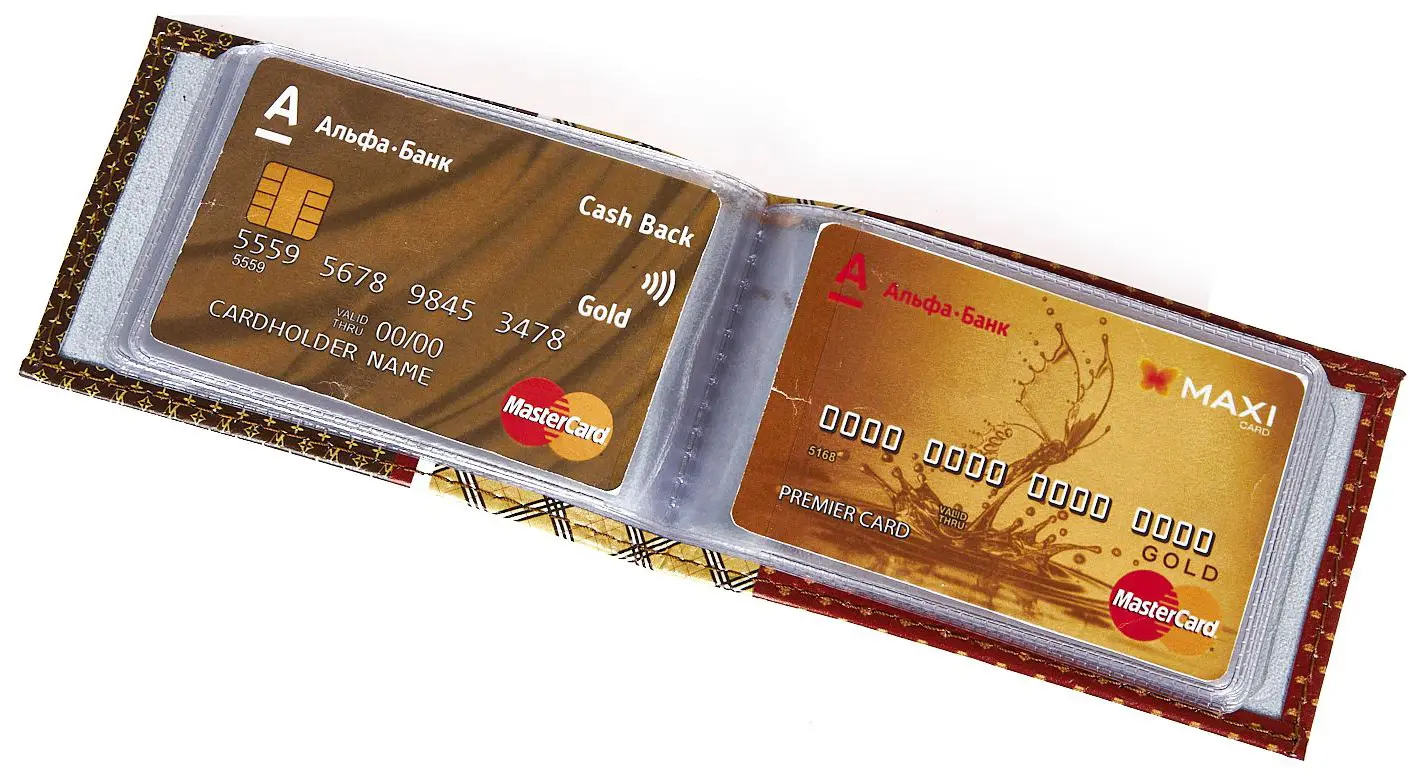 Визитница горизонтальная 1 секц. (18 карманов) из натуральной кожи, цветной рисунок по коже "Бренд"
