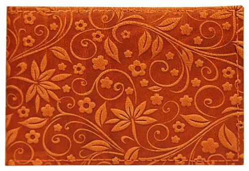 Визитница горизонтальная 1 секц. (18 карманов) из натуральной кожи, рыжая, тиснение "Флаверс"