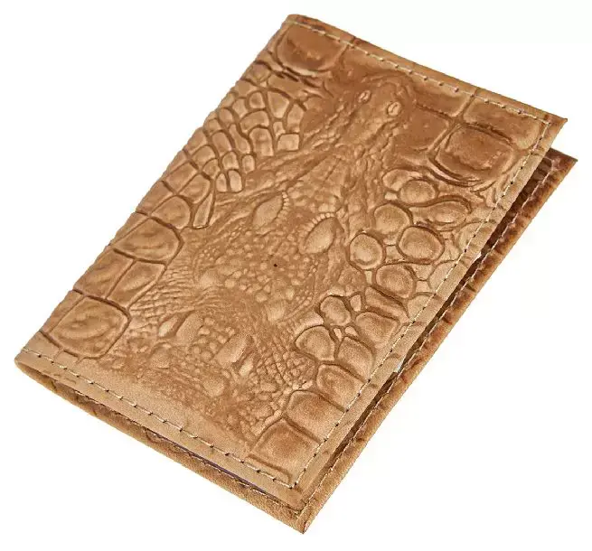 Визитница вертикальная 1 секц. (18 карманов) из натуральной кожи, бежевая, тиснение "Данди"