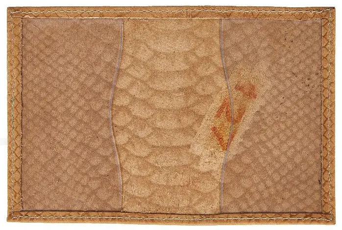 Визитница вертикальная 1 секц. (18 карманов) из натуральной кожи, бежевая, тиснение "Питон"