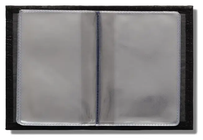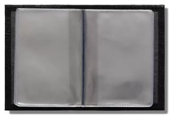 Визитница вертикальная 1 секц. (18 карманов) из натуральной кожи, черная, тиснение "Данди"