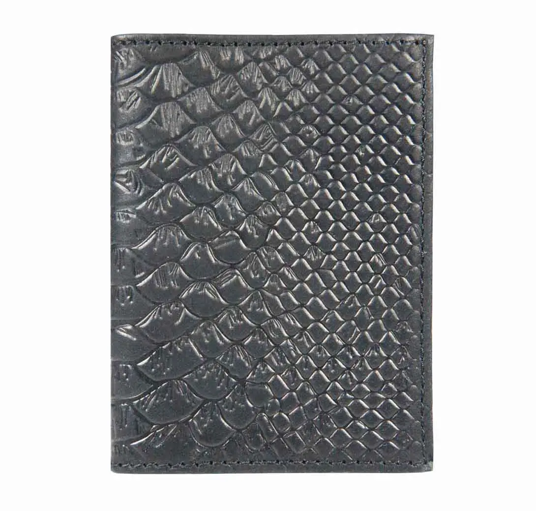Визитница вертикальная 1 секц. (18 карманов) из натуральной кожи, черная, тиснение "Питон"