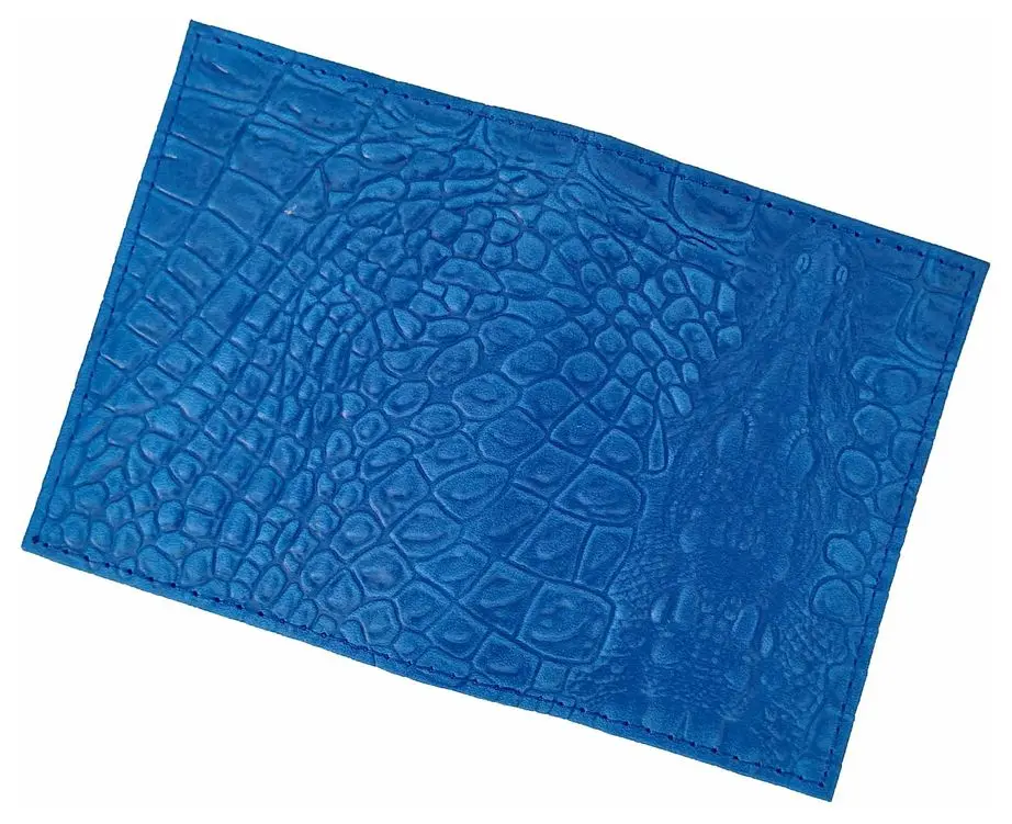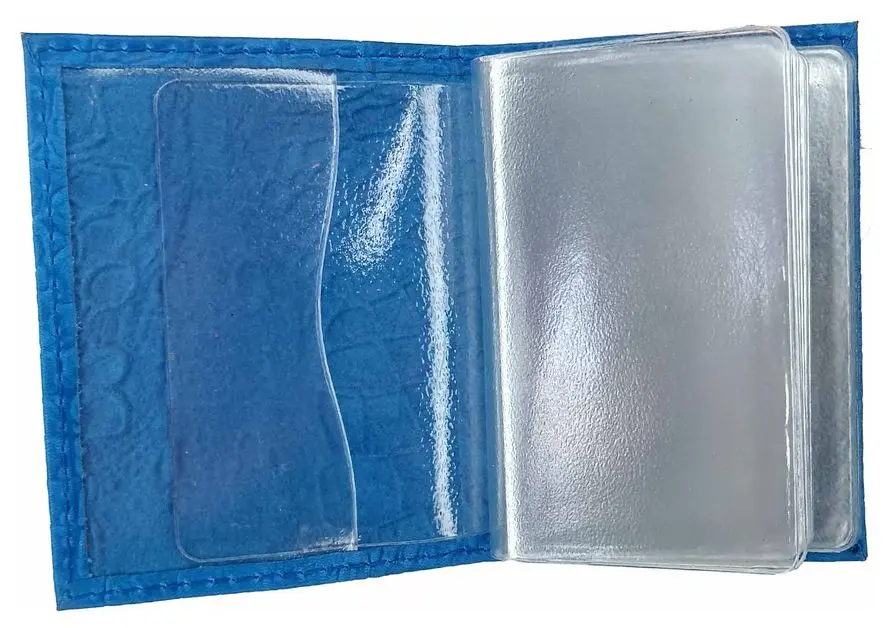 Визитница вертикальная 1 секц. (18 карманов) из натуральной кожи, голубая, тиснение "Данди"