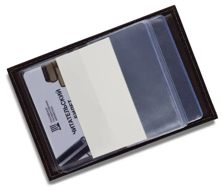 Визитница вертикальная 1 секц. (18 карманов) из натуральной кожи, коричневая, тиснение "Индийский орнамент"