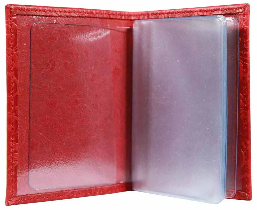 Визитница вертикальная 1 секц. (18 карманов) из натуральной кожи, красная, тиснение "Питон"