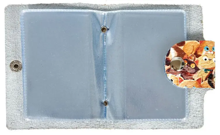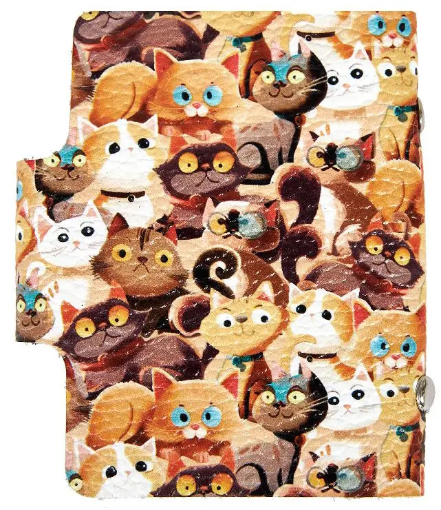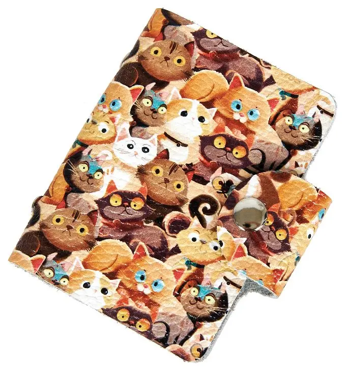 Визитница вертикальная 1 секц. (18 карманов) из натуральной кожи, на кнопке, цветной рисунок по коже "Пушистики"