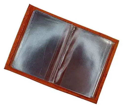 Визитница вертикальная 1 секц. (18 карманов) из натуральной кожи, рыжая, тиснение "Вдохновение"