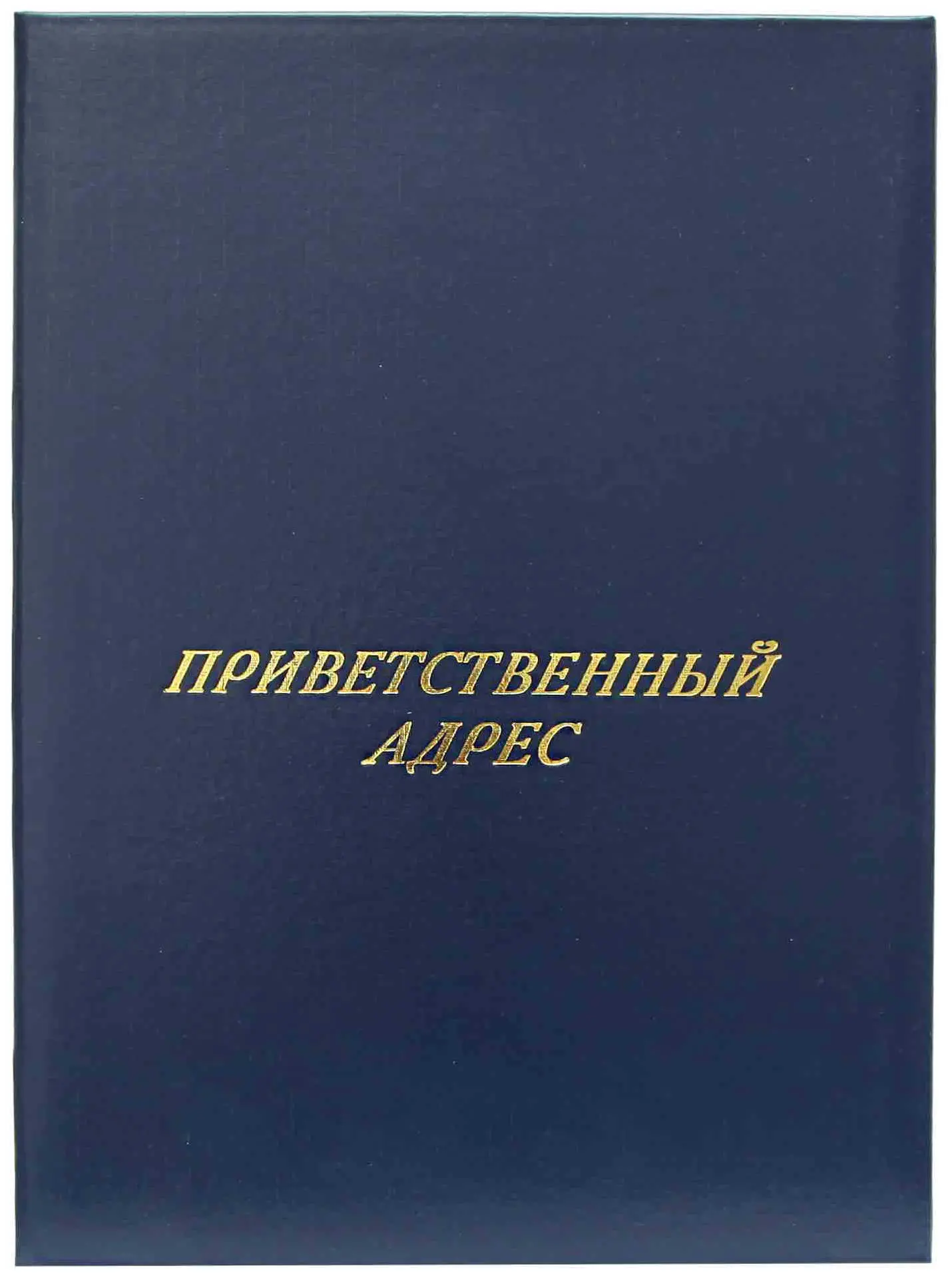 Папка адресная бумвинил А4 (пухлая) "Приветственный адрес" синяя