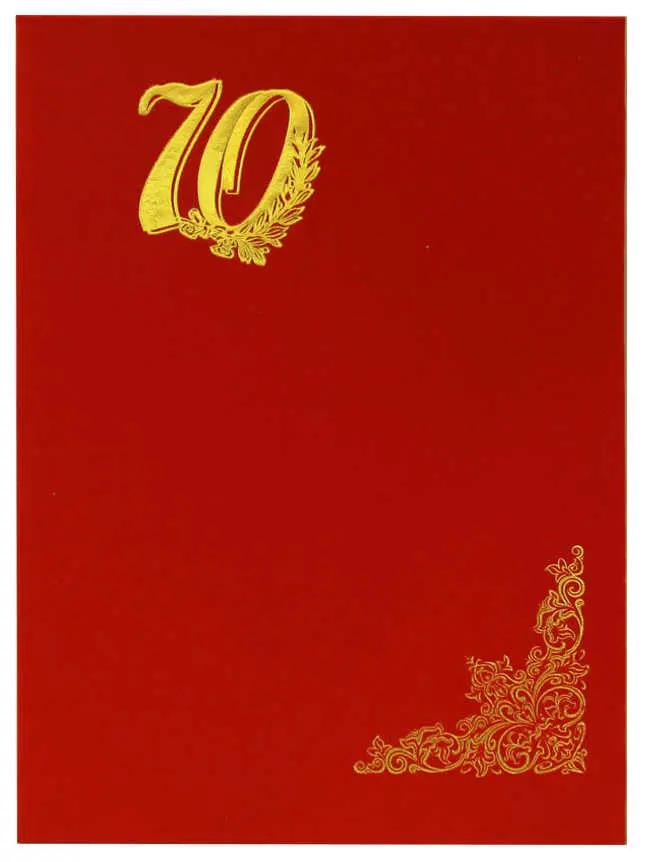Папка адресная дизайнерский материал бархат А4 (пухлая) "70 лет" красный